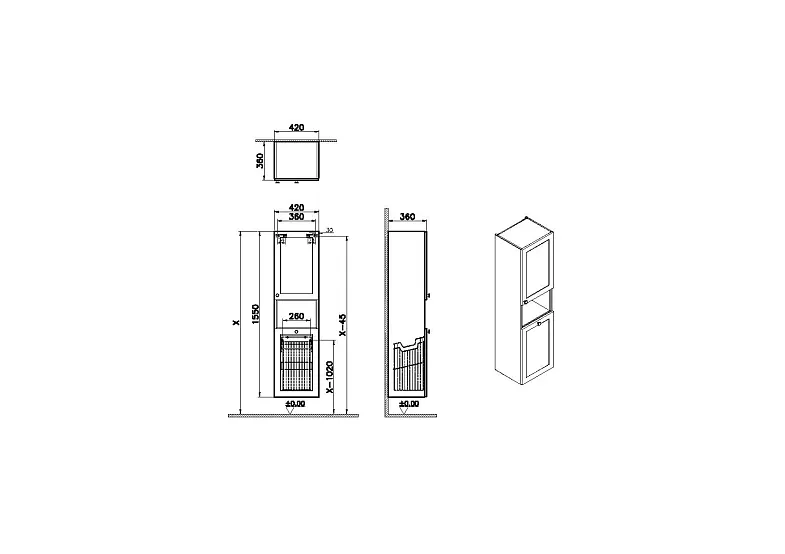 Root Classic Пенал 40 см с корзиной для белья матовый темно-синий правый VITRA арт-68529