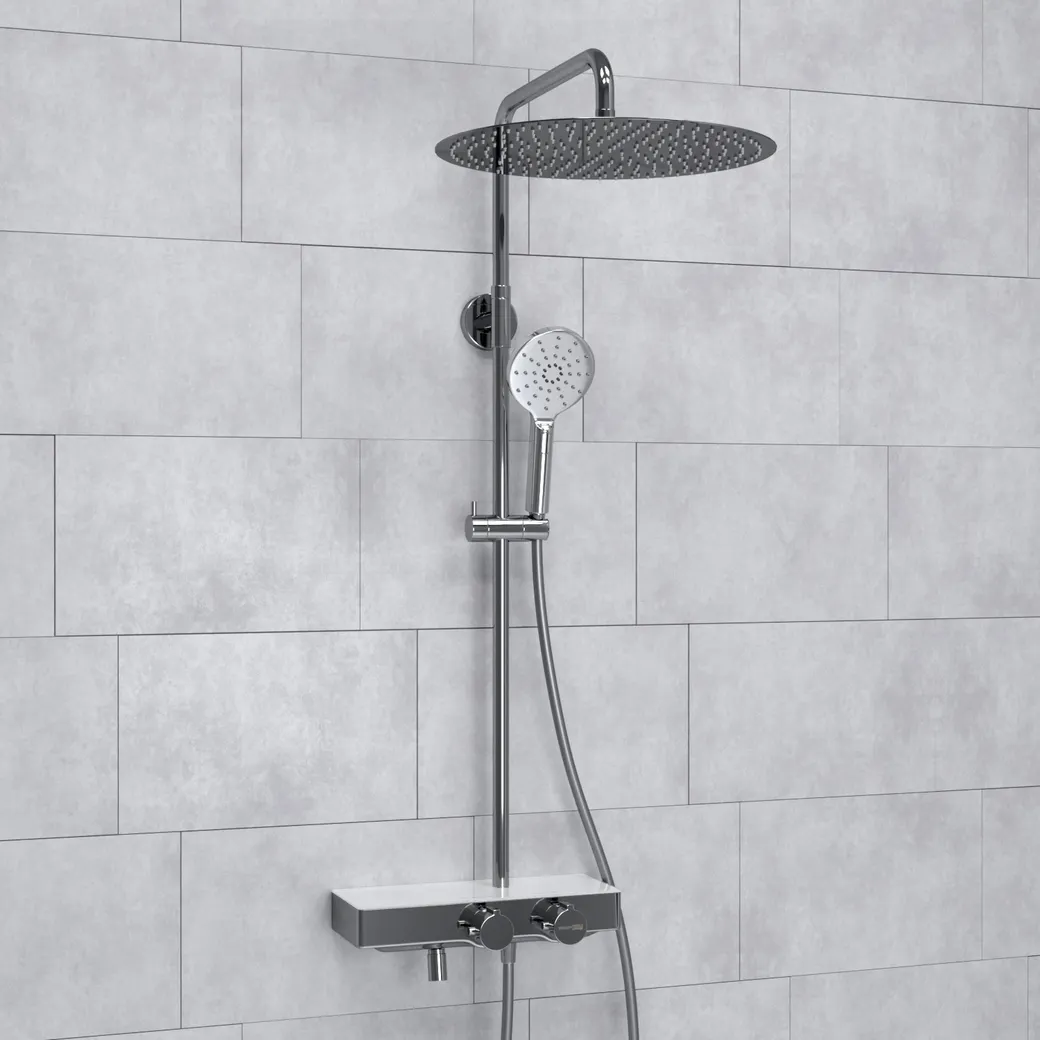 - Термостатический смеситель: Гарантирует постоянную температуру воды, предотвращая внезапные перепады, что делает использование душа комфортным.