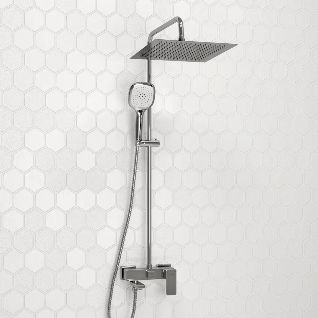 - Квадратная форма душевого комплекта придаёт элегантность и современный вид.