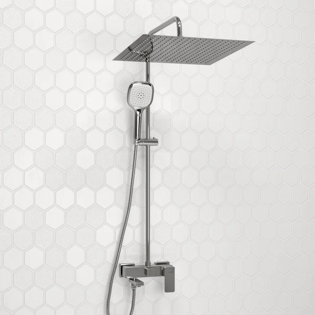 - Оптимальная форма: Квадратная форма душевой системы обеспечивает равномерное распределение воды.