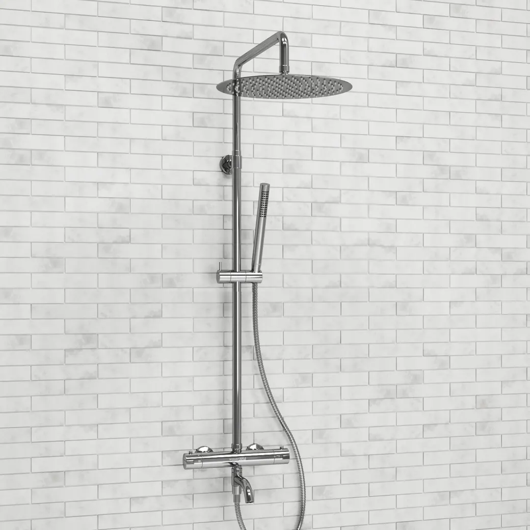 - Термостатический смеситель обеспечивает постоянную комфортную температуру воды, что делает процесс принятия душа ещё более приятным.
