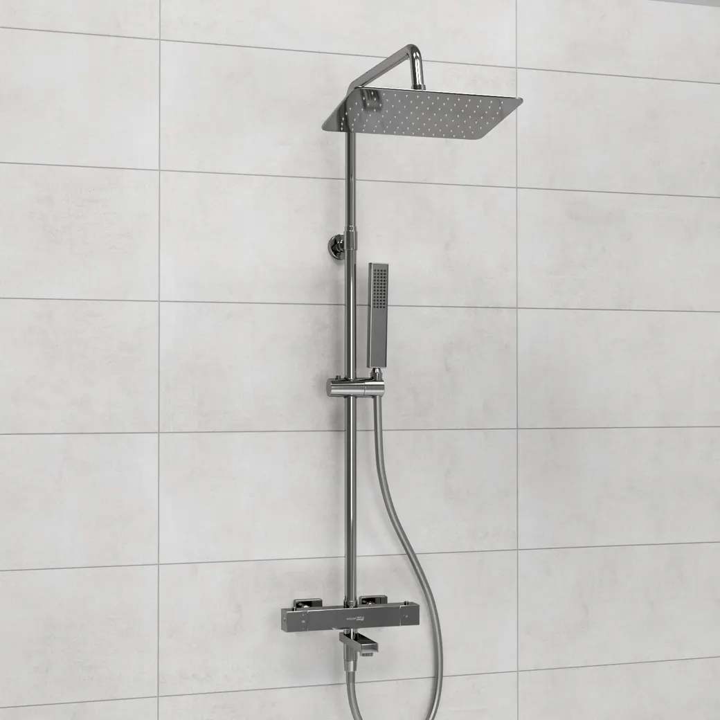 - Стабильная температура воды: Термостатический смеситель поддерживает постоянную температуру, что делает использование душа более комфортным.