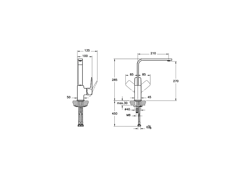 Root Square Смеситель для кухни медь VITRA арт-A4275326EXP