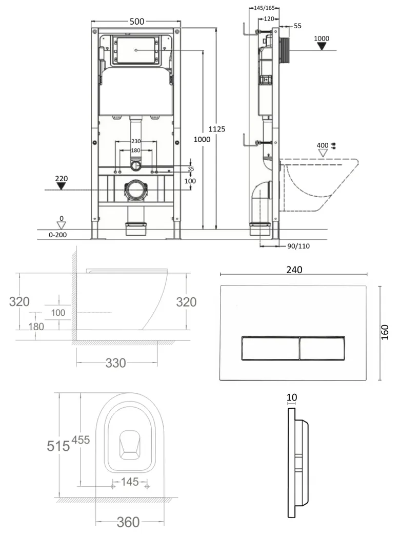 Подвесной безободковый унитаз с инсталляцией и кнопкой смыва от немецкого бренда Agger - функциональное и эргономичное решение. Материал унитаза санфарфор отличается беспористой структурой, высокой прочностью и стойкостью к появлению пятен, что позволит сохранить первоначальный вид изделия на долгие годы использования, гарантия от производителя 25 лет. Обтекаемая форма корпуса не позволяет скапливаться пыли. Мощный каскадный смыв - подарит комфорт при эксплуатации. Безободковая модель - отсутствие недоступных областей для уборки обеспечит простой уход и отсутствие посторонних запахов. В комплекте быстросъемная крышка-сиденье с функцией плавного закрывания Soft-close, сиденье изготовлено из прочного материала - дюропласта, петли крышки-сиденья из нержавеющей стали. Скрытая система монтажа, цвет глянцевый белый. Инсталляция обеспечит минимальный уровень шума и максимальный уровень комфорта при эксплуатации. В комплект входят все необходимые крепления. Максимально допустимая нагрузка 400 кг. Объем смыва 3 и 6 литра позволяет экономить воду, снижая ее расход. Ширина рамы - 500 мм, глубина - 145/165 мм, высота - 1125/1325 мм. Материал - сталь. Кнопка смыва с механическим управлением отличается современным дизайном и гармонично дополнит интерьер. Выполнена в цвете глянцевый белый. Форма кнопок - прямоугольная, материал - пластик. Гарантия: 25 лет - унитаз, 10 лет - инсталляция, 2 года - кнопка смыва.