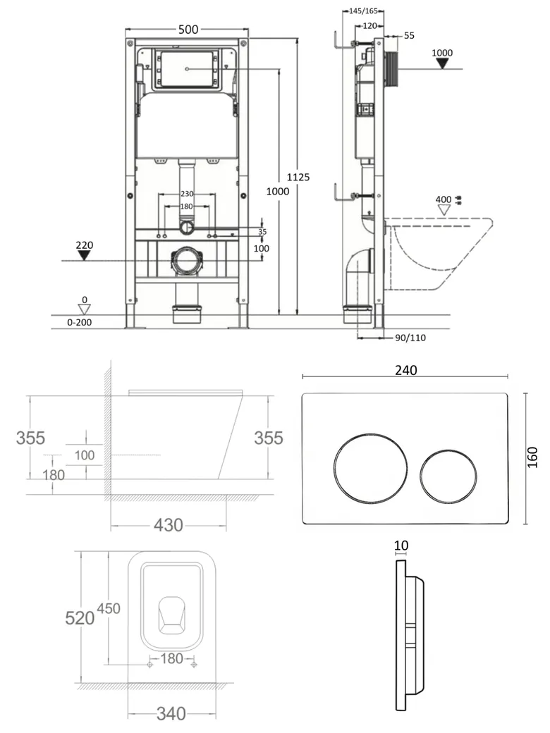 Подвесной безободковый унитаз с инсталляцией и кнопкой смыва от немецкого бренда Agger - функциональное и эргономичное решение. Материал унитаза санфарфор отличается беспористой структурой, высокой прочностью и стойкостью к появлению пятен, что позволит сохранить первоначальный вид изделия на долгие годы использования, гарантия от производителя 25 лет. Обтекаемая форма корпуса не позволяет скапливаться пыли. Мощный каскадный смыв - подарит комфорт при эксплуатации. Безободковая модель - отсутствие недоступных областей для уборки обеспечит простой уход и отсутствие посторонних запахов. В комплекте быстросъемная крышка-сиденье с функцией плавного закрывания Soft-close, сиденье изготовлено из прочного материала - дюропласта, петли крышки-сиденья из нержавеющей стали. Скрытая система монтажа, цвет глянцевый белый. Инсталляция обеспечит минимальный уровень шума и максимальный уровень комфорта при эксплуатации. В комплект входят все необходимые крепления. Максимально допустимая нагрузка 400 кг. Объем смыва 3 и 6 литра позволяет экономить воду, снижая ее расход. Ширина рамы - 500 мм, глубина - 145/165 мм, высота - 1125/1325 мм. Материал - сталь. Кнопка смыва с механическим управлением отличается современным дизайном и гармонично дополнит интерьер. Выполнена в цвете глянцевый белый. Форма кнопок - круглая, материал - пластик. Гарантия: 25 лет - унитаз, 10 лет - инсталляция, 2 года - кнопка смыва.