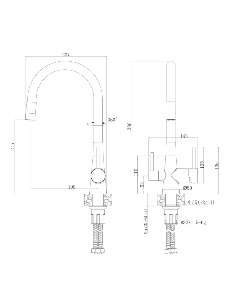 Однозахватный смеситель для кухни с гибким поворотным изливом Agger Elegant с возможностью подключения фильтра – эргономичное решение для тех, кто заботится о своем здоровье и здоровье близких. Фирменный керамический картридж Agger и эргономичный рычаг делают легким управление напором и температурой воды. Корпус изделия изготовлен из высококачественной нержавеющей стали, не подверженной коррозии от длительного контакта с водой. Покрытие в цвете матовый черный, за которым просто ухаживать мягкой салфеткой, нанесено методом порошковой окраски с многоступенчатой системой подготовки и высокотемпературной обработкой. Встроенный аэратор Neoperl экономит воду и, обогащая струю воздухом, делает ее мягкой без брызг. Смеситель оснащен гибким изливом, что упростит мытье посуды и гигиеническую уборку мойки. В комплекте гибкая подводка (600 мм). Стандарт подводки - 1/2. Гарантия 5 лет.