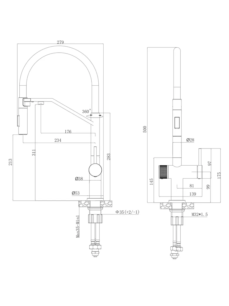 Agger Elegant смеситель для кухни однорычажный с каналом для питьевой воды и гибким изливом, черный матовый арт-A3241444