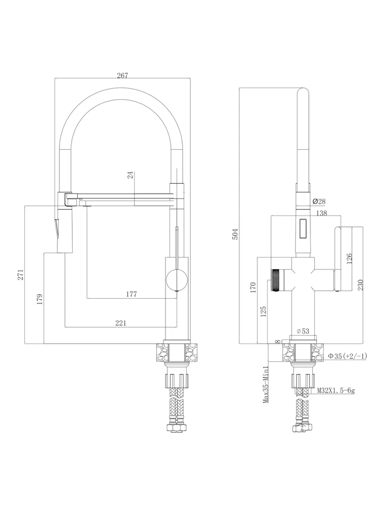 Agger Elegant смеситель для кухни однорычажный с каналом для питьевой воды и гибким изливом, черный матовый арт-A3252544