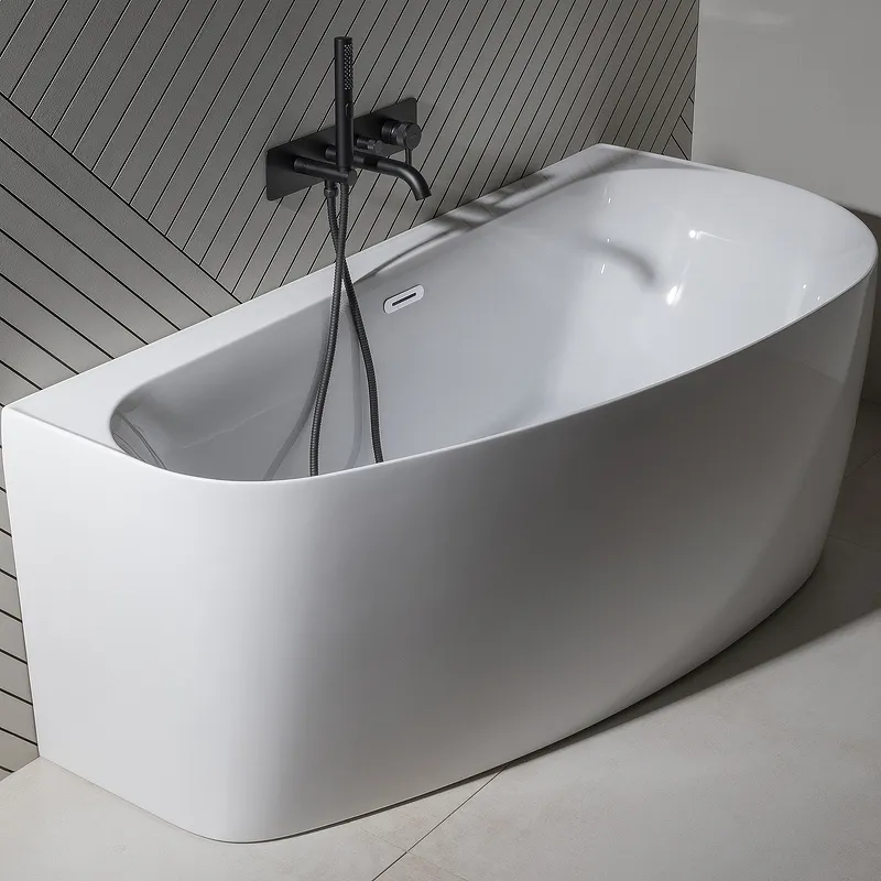 - Удобство использования: Ассиметричная форма с местом на бортике для смесителя и аксессуаров обеспечивает дополнительный комфорт.