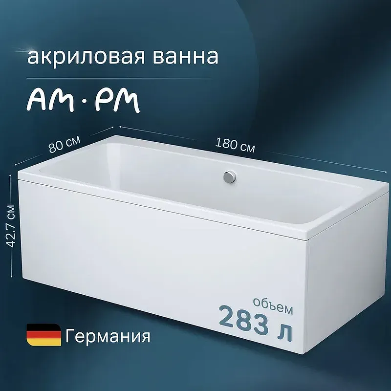 Акриловая ванна AM.PM Func 180х80 W84A-180-080W-A сочетает в себе стильный современный дизайн и высокую функциональность. Изготовленная из акрила, она обеспечивает долговечность и комфорт, а ее размеры 180х80 позволяют удобно разместиться даже в небольших ванных комнатах.