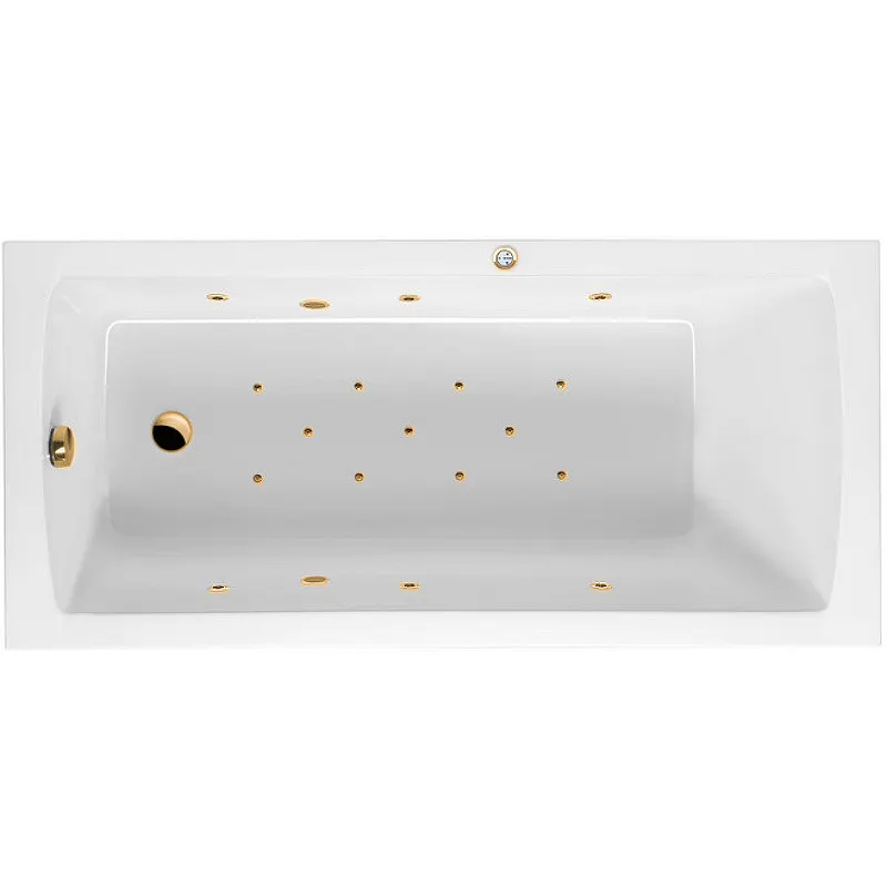 Акриловая ванна Excellent Aquaria 140x70 WAEX.AQU14.RELAX.GL с гидромассажем.Характеристики: Цвет: белый. Материал: литой акрил. Форма: прямоугольная. Ориентация: универсальная. Размеры (ШхВхД): 700х440х1395 мм. Объем: 180 л. Расположение слива: в ногах. Монтаж: пристенный, встраиваемый. С аэромассажем. Хромотерапия. Зоны гидромассажа: боковая. Цвет форсунок: золото. Управления: электронное. В комплекте поставки: Ванна на каркасе, со сливом-переливом. Гидромассажная система (6 форсунок MIDI-JET) с функцией Пульсирующий режим. Аэромассажная система (11 форсунок AERO-JET) с функцией регулировки интенсивности массажа. Электронное управление на 3 функции с датчиком уровня воды (защита от сухого пуска). Хромотерапия с функцией Стоп (7 режимов работы).