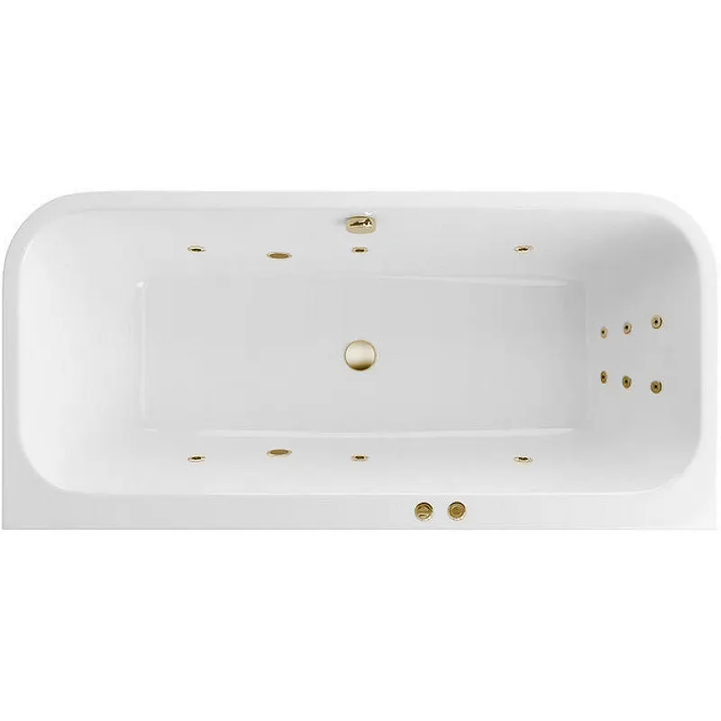 Акриловая ванна Excellent Arana 180x85 WAEX.ARA18.LINE.BR с гидромассажем.Характеристики: Материал: литой акрил. Форма: прямоугольная. Ориентация: универсальная. Размеры (ШхВхД): 845х475х1790 мм. Глубина: 475 мм. Объем: 260 л. Расположение слива: по центру. Монтаж: пристенный. Зоны гидромассажа: спины, боковая. Цвет форсунок: бронза. Управления: пневматическое. В комплекте поставки: Ванна на каркасе, со сливом-переливом. Гидромассажная система (6 форсунок MIDI-JET). Массаж спины (6 форсунок MICRO-JET). Пневматическое управление (пневмокнопка вкл/выкл, регулятор подачи воздуха в систему).