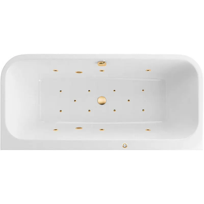 Акриловая ванна Excellent Arana 180x85 WAEX.ARA18.RELAX.GL с гидромассажем.Характеристики: Материал: литой акрил. Форма: прямоугольная. Ориентация: универсальная. Размеры (ШхВхД): 845х475х1790 мм. Глубина: 475 мм. Объем: 260 л. Расположение слива: по центру. Монтаж: пристенный. С аэромассажем. Хромотерапия. Зоны гидромассажа: боковая. Цвет форсунок: золото. Управления: электронное. В комплекте поставки: Ванна на каркасе, со сливом-переливом. Гидромассажная система (6 форсунок MIDI-JET) с функцией Пульсирующий режим. Аэромассажная система (10 форсунок AERO-JET) с функцией регулировки интенсивности массажа. Электронное управление на 3 функции с датчиком уровня воды (защита от сухого пуска). Хромотерапия с функцией Стоп (7 режимов работы).