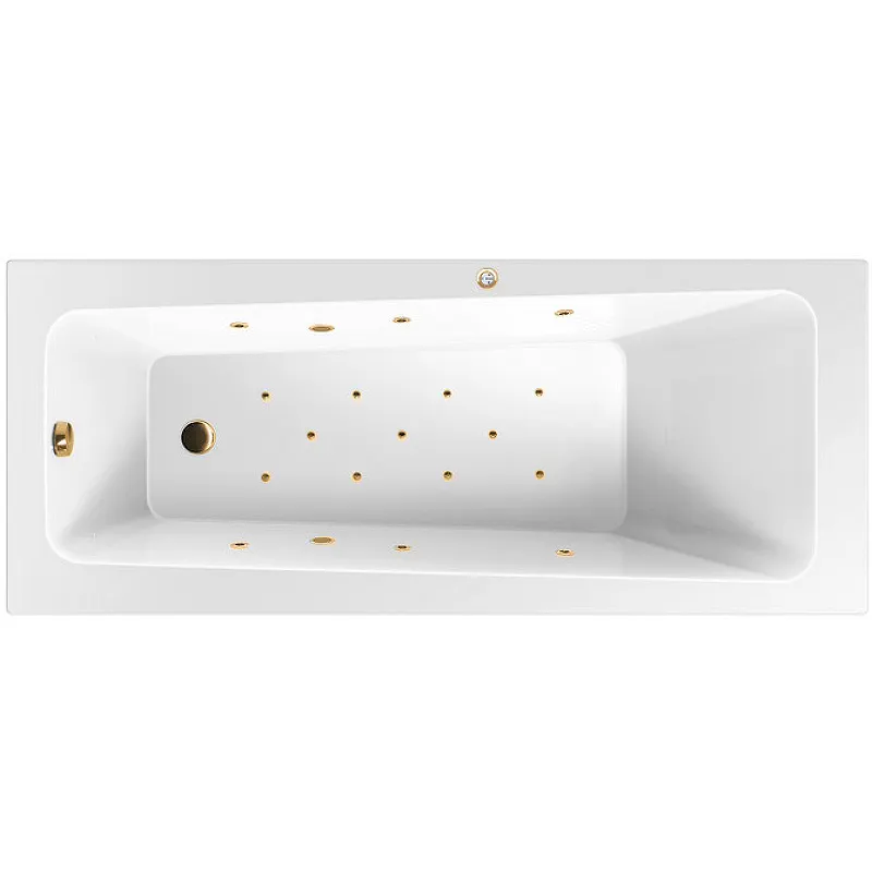 Акриловая ванна Excellent Ava 160x70 WAEX.AVA16.RELAX.GL с гидромассажем.Характеристики: Материал: литой акрил. Форма: прямоугольная. Ориентация: универсальная. Размеры (ШхВхД): 705х430х1600 мм. Глубина: 430 мм. Объем: 210 л. Расположение слива: в ногах. Монтаж: пристенный, встраиваемый. С аэромассажем. Хромотерапия. Зоны гидромассажа: боковая. Цвет форсунок: золото. Управления: электронное. В комплекте поставки: Ванна на каркасе, со сливом-переливом. Гидромассажная система (6 форсунок MIDI-JET) с функцией Пульсирующий режим. Аэромассажная система (11 форсунок AERO-JET) с функцией регулировки интенсивности массажа. Электронное управление на 3 функции с датчиком уровня воды (защита от сухого пуска). Хромотерапия с функцией Стоп (7 режимов работы).