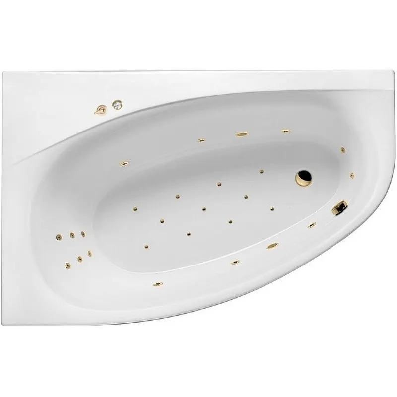 Акриловая ванна Excellent Kameleon 170x110 L WAEX.KML17.ULTRA.GL с гидромассажем.Характеристики: Цвет: белый. Материал: литой акрил. Форма: асимметричная. Ориентация: левосторонняя. Размеры (ШхВхД): 1100х490х1700 мм. Объем: 235 л. Расположение слива: в ногах. Монтаж: в угол. С аэромассажем. Хромотерапия. Зоны гидромассажа: спины, ног, боковая. Цвет форсунок: золото. Управления: электронное. Зонный переключатель. В комплекте поставки: Ванна на каркасе, со сливом-переливом. Гидромассажная система (6 форсунок MIDI-JET) с функцией Пульсирующий режим. Аэромассажная система (11 форсунок AERO-JET) с функцией регулировки интенсивности массажа. Массаж спины (6 форсунок MICRO-JET). Массаж ступней (2 форсунки MICRO-JET). Кран-баланс (регулировка системы массажа спины). Электронное управление на 3 функции с датчиком уровня воды (защита от сухого пуска). Хромотерапия с функцией Стоп (7 режимов работы).