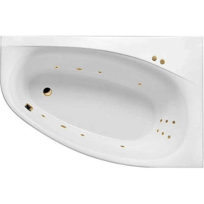 Акриловая ванна Excellent Kameleon 170x110 R WAEX.KMP17.LINE.GL с гидромассажем.Характеристики: Цвет: белый. Материал: литой акрил. Форма: асимметричная. Ориентация: правосторонняя. Размеры (ШхВхД): 1100х490х1700 мм. Объем: 235 л. Расположение слива: в ногах. Монтаж: в угол. Зоны гидромассажа: спины, боковая. Цвет форсунок: золото. Управления: пневматическое. В комплекте поставки: Ванна на каркасе, со сливом-переливом. Гидромассажная система (6 форсунок MIDI-JET). Массаж спины (6 форсунок MICRO-JET). Пневматическое управление (пневмокнопка вкл/выкл, регулятор подачи воздуха в систему).