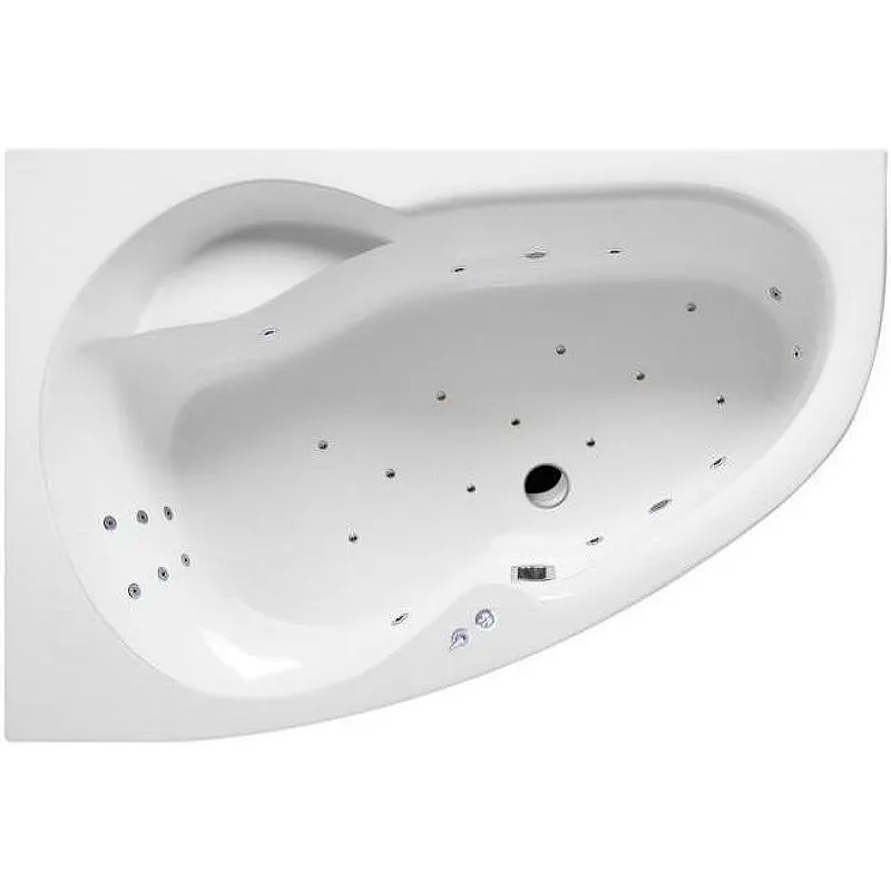 Акриловая ванна Excellent Newa 160x95 L WAEX.NEL16.ULTRA.CR с гидромассажем.Характеристики: Материал: литой акрил. Форма: асимметричная. Ориентация: левосторонняя. Размеры (ШхВхД): 950х470х1600 мм. Глубина: 470 мм. Объем: 225 л. Расположение слива: по центру. Монтаж: угловой. С аэромассажем. Хромотерапия. Зоны гидромассажа: спины, ног, боковая. Цвет форсунок: хром. Управления: электронное. Зонный переключатель. В комплекте поставки: Ванна на каркасе, со сливом-переливом. Гидромассажная система (6 форсунок MIDI-JET) с функцией Пульсирующий режим. Аэромассажная система (11 форсунок AERO-JET) с функцией регулировки интенсивности массажа. Массаж спины (6 форсунок MICRO-JET). Массаж ступней (2 форсунки MICRO-JET). Кран-баланс (регулировка системы массажа спины). Электронное управление на 3 функции с датчиком уровня воды (защита от сухого пуска). Хромотерапия с функцией Стоп (7 режимов работы).