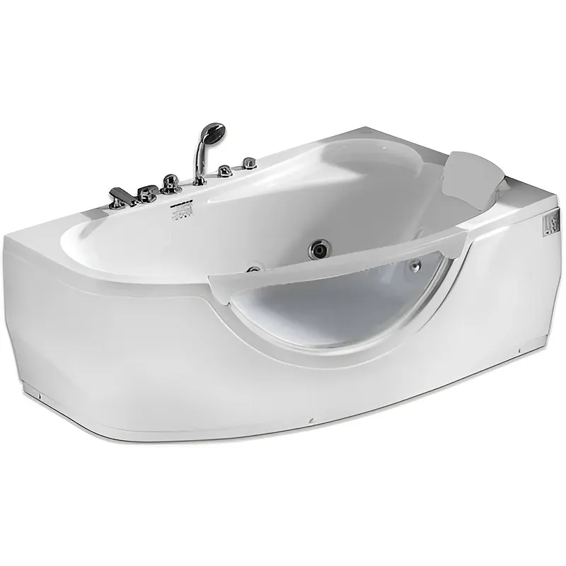 - Угловая асимметричная форма: позволяет эффективно использовать пространство в ванной комнате.