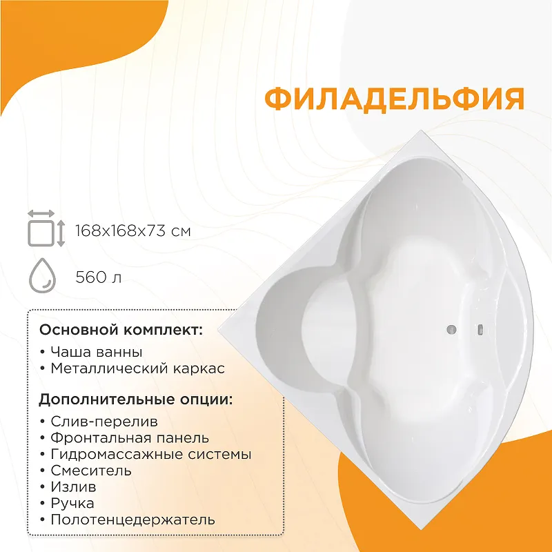 Преимущества Акриловая ванна Radomir Филадельфия 168x168 1-01-0-0-1-042
