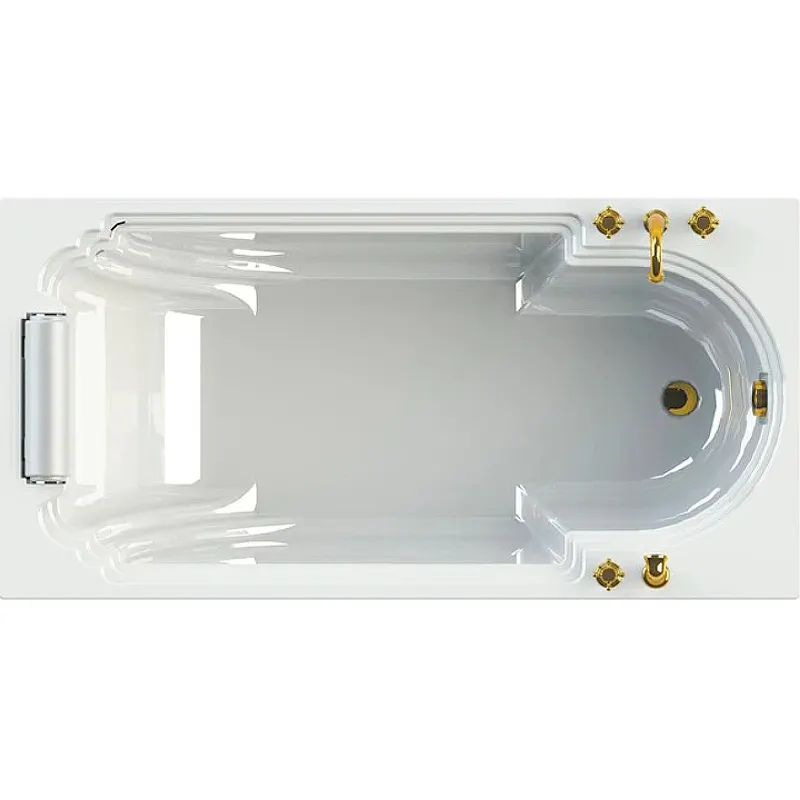 Акриловая ванна Radomir Fra Grande Анабель 170x85 4-01-3-0-1-417.Акриловая ванна Анабель 170х85 - шикарная прямоугольная ванна ручной сборки, способная гармонично вписаться в интерьер и наполнить его элегантностью и изяществом. В дизайне ванны ясно прослеживается непревзойденный винтажный стиль, характерный для всех изделий Fra Grande. Возможно два варианта установки: пристенная ванна Анабель с комплектом панелей и встраиваемая ванна Анабель для монтирования в пол или подиум. В пристенном варианте исполнения ванна комплектуется слегка вогнутыми панелями, за счет чего смотрится очень оригинально.Характеристики: Цвет: белый. Цвет ножек: золото. Материал: акрил. 6 мм акрил Senoplast: прочный износостойкий материал, который остается белоснежным на протяжении всего срока использования. Технология AntiBac: не позволяет бактериям скапливаться на поверхности. Технология Non-Slip: нескользящее покрытие на дне ванны обеспечивает безопасное использование и предотвращает падения. Технология StopWater: поддержание уровня воды за счет герметичного слива и эффективной системы перелива. Дно с закладной из цельного листа ДСП, толщиной 16 мм - надежная опора без прогибов и скрипов. Тип дна: гладкое. Теплошумоизоляция чаши и панелей – поддерживает оптимальную температуру воды в ванне и значительно снижает уровень шума. Лучшие эргономичные решения – конструкция ванны разработана с учетом особенностей и изгибов тела, продумана каждая деталь. Размеры (ШхВхД): 850х660х1700 мм. Глубина: 500 мм. Объем: 310 л. Металлическая рама: квадратный профиль 25 мм с 5 точками опоры гарантирует устойчивость при нагрузке до 900 кг. Расположение слива: в ногах. Диаметр слива: 40 мм. Диаметр отверстия под слив-перелив: 51 мм. Форма: прямоугольная. Ориентация: универсальная. Подголовник. Монтаж: пристенный, встраиваемый. В комплекте поставки: Чаша ванны. Металлический каркас. Подголовник.