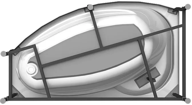 Форма: асимметричная, угловая. Ориентация: правая. Толщина акрилового листа: 5 мм. Встроенное сиденье. Встроенный подголовник. Широкие бортики позволяют расположить различные ванные принадлежности. Комфортная просторная чаша с выступами для рук и пологой спинкой, создающей необходимую поддержку спины. Диаметр слива: 5.1 см. В комплекте поставки: чаша ванны, каркас.