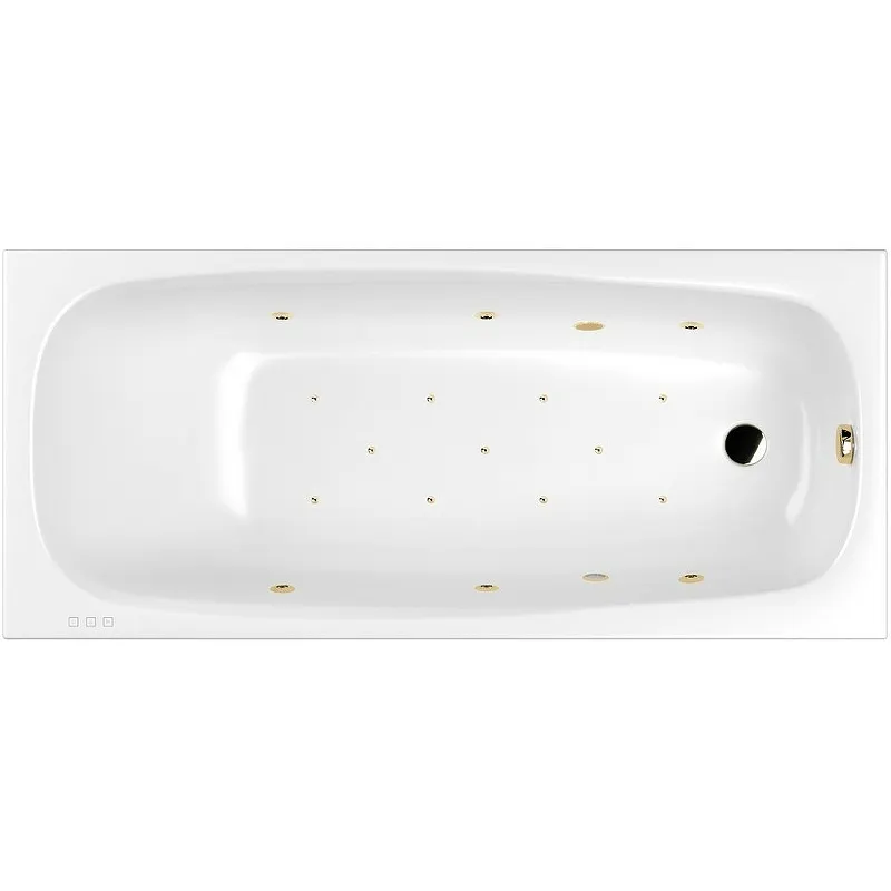 Акриловая ванна Whitecross Layla 170x75 0102.170075.100.RELAX.GL с гидромассажем.Характеристики: Цвет: белый. Материал: литой акрил. Размеры (ШхВхД): 750х460х1700 мм. Высота борта: 40 мм. Глубина: 460 мм. Объем: 230 л. Форма: прямоугольная. Ориентация: универсальная. Расположение слива: в ногах. Монтаж: пристенный. С аэромассажем. Хромотерапия. Зоны гидромассажа: боковая. Цвет форсунок: золото. Управления: сенсорное. В комплекте поставки: Ванна на каркасе, со сливом-переливом. Гидромассажная система (6 форсунок MIDI-JET) с функцией Пульсирующий режим. Аэромассажная система (11 форсунок AERO-JET) с функцией регулировки интенсивности массажа. Сенсорное управление на 3 функции с датчиком уровня воды (защита от сухого пуска). Хромотерапия с функцией Стоп (7 режимов работы).