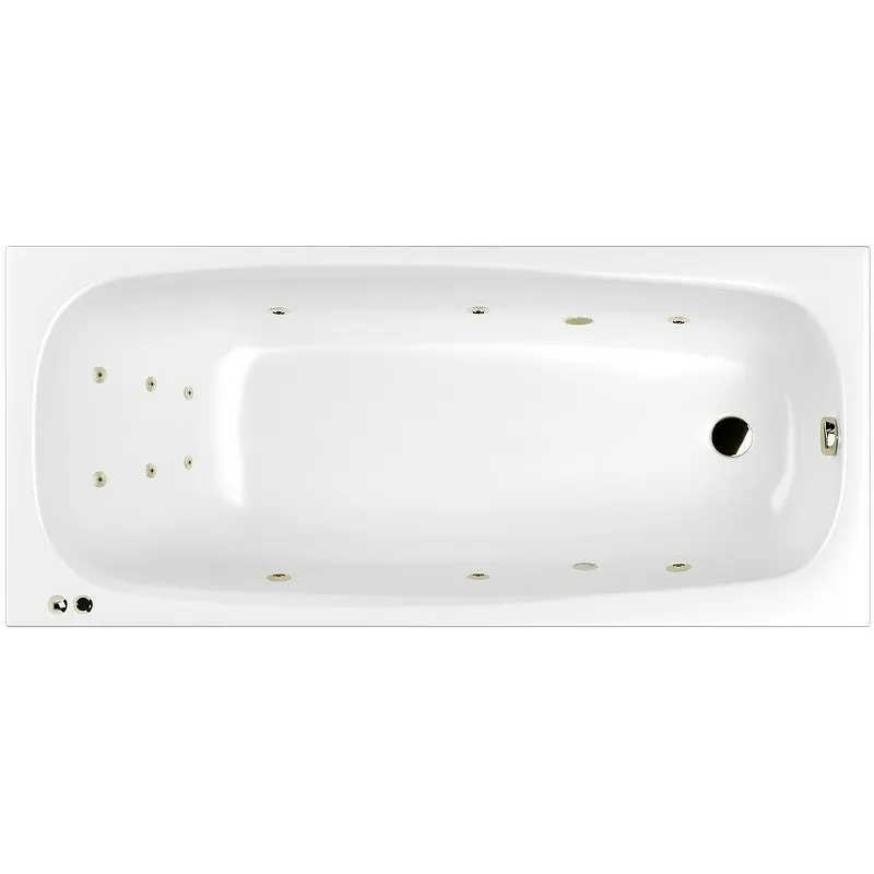 Акриловая ванна Whitecross Layla 180x80 0102.180080.100.LINE.BR с гидромассажем.Характеристики: Цвет: белый. Материал: литой акрил. Размеры (ШхВхД): 800х470х1800 мм. Высота борта: 40 мм. Глубина: 470 мм. Объем: 270 л. Форма: прямоугольная. Ориентация: универсальная. Расположение слива: в ногах. Монтаж: пристенный. Зоны гидромассажа: спины, боковая. Цвет форсунок: бронза. Управления: пневматическое. В комплекте поставки: Ванна на каркасе, со сливом-переливом. Гидромассажная система (6 форсунок MIDI-JET). Массаж спины (6 форсунок MICRO-JET). Пневматическое управление (пневмокнопка вкл/выкл, регулятор подачи воздуха в систему).