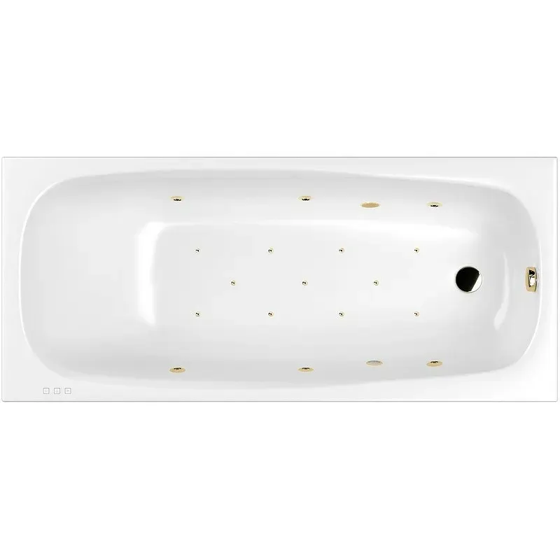 Акриловая ванна Whitecross Layla 180x80 0102.180080.100.RELAX.GL с гидромассажем.Характеристики: Цвет: белый. Материал: литой акрил. Размеры (ШхВхД): 800х470х1800 мм. Высота борта: 40 мм. Глубина: 470 мм. Объем: 270 л. Форма: прямоугольная. Ориентация: универсальная. Расположение слива: в ногах. Монтаж: пристенный. С аэромассажем. Хромотерапия. Зоны гидромассажа: боковая. Цвет форсунок: золото. Управления: сенсорное. В комплекте поставки: Ванна на каркасе, со сливом-переливом. Гидромассажная система (6 форсунок MIDI-JET) с функцией Пульсирующий режим. Аэромассажная система (11 форсунок AERO-JET) с функцией регулировки интенсивности массажа. Сенсорное управление на 3 функции с датчиком уровня воды (защита от сухого пуска). Хромотерапия с функцией Стоп (7 режимов работы).