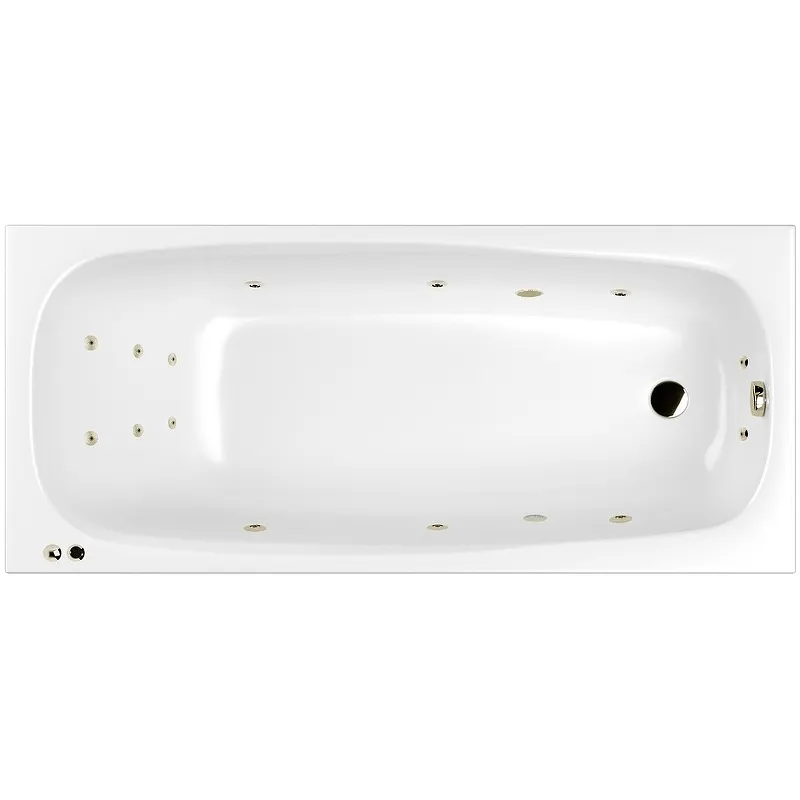 Акриловая ванна Whitecross Layla 180x80 0102.180080.100.SMART.BR с гидромассажем.Характеристики: Цвет: белый. Материал: литой акрил. Размеры (ШхВхД): 800х470х1800 мм. Высота борта: 40 мм. Глубина: 470 мм. Объем: 270 л. Форма: прямоугольная. Ориентация: универсальная. Расположение слива: в ногах. Монтаж: пристенный. Зоны гидромассажа: спины, ног, боковая. Цвет форсунок: бронза. Управления: пневматическое. Зонный переключатель. В комплекте поставки: Ванна на каркасе, со сливом-переливом. Гидромассажная система (6 форсунок MIDI-JET). Массаж спины (6 форсунок MICRO-JET). Массаж ступней (2 форсунки MICRO-JET). Пневматическое управление (пневмокнопка вкл/выкл, регулятор подачи воздуха в систему). Кран-баланс (регулировка системы массажа спины). Защита от сухого пуска.