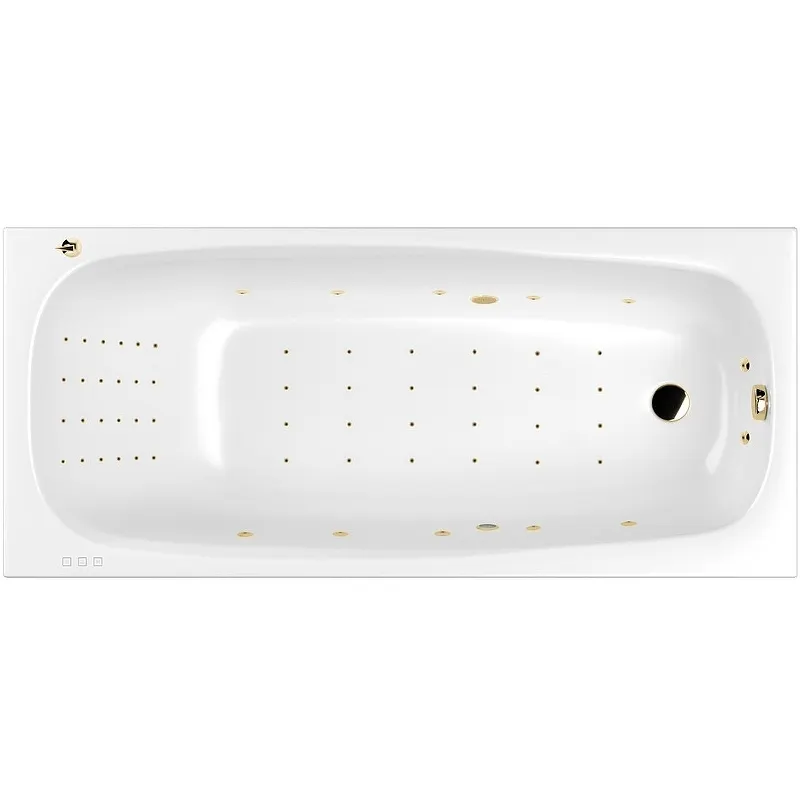 Акриловая ванна Whitecross Layla Slim 170x75 0122.170075.100.NANO.GL с гидромассажем.Характеристики: Цвет: белый. Материал: литой акрил. Размеры (ШхВхД): 750х460х1700 мм. Высота борта: 18 мм. Глубина: 460 мм. Глубина до перелива: 350 мм. Объем: 230 л. Форма: прямоугольная. Ориентация: универсальная. Расположение слива: в ногах. Монтаж: пристенный/встраиваемый. С аэромассажем. Хромотерапия. Зоны гидромассажа: спины, ног, боковая. Цвет форсунок: золото. Управления: сенсорное. Зонный переключатель. В комплекте поставки: Ванна на каркасе, со сливом-переливом. Гидромассажная система (10 форсунок MICRO-JET) с функцией Пульсирующий режим. Массаж спины (24 форсунок NANO-JET). Аэромассажная система (24 форсунок NANO-JET) с функцией регулировки интенсивности массажа. Массаж ступней (2 форсунки MICRO-JET). Сенсорное управление на 3 функции с датчиком уровня воды (защита от сухого пуска). Кран-баланс (регулировка системы массажа спины). Хромотерапия с функцией Стоп (7 режимов работы).
