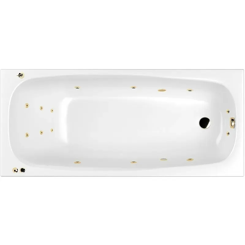 Акриловая ванна Whitecross Layla Slim 180x80 0122.180080.100.SMART.GL с гидромассажем.Характеристики: Цвет: белый. Материал: литой акрил. Размеры (ШхВхД): 800х470х1800 мм. Высота борта: 18 мм. Глубина: 470 мм. Глубина до перелива: 350 мм. Объем: 270 л. Форма: прямоугольная. Ориентация: универсальная. Расположение слива: в ногах. Монтаж: пристенный/встраиваемый. Зоны гидромассажа: спины, ног, боковая. Цвет форсунок: золото. Управления: пневматическое. Зонный переключатель. В комплекте поставки: Ванна на каркасе, со сливом-переливом. Гидромассажная система (6 форсунок MIDI-JET). Массаж спины (6 форсунок MICRO-JET). Массаж ступней (2 форсунки MICRO-JET). Пневматическое управление (пневмокнопка вкл/выкл, регулятор подачи воздуха в систему). Кран-баланс (регулировка системы массажа спины). Защита от сухого пуска.