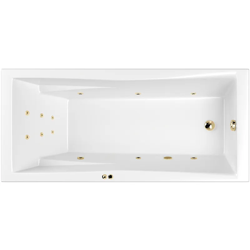 Акриловая ванна Whitecross Palace 180x80 0104.180080.100.LINE.GL с гидромассажем.Характеристики: Цвет: белый. Материал: литой акрил. Форма: прямоугольная. Размеры (ШхВхД): 800х620х1795 мм. Глубина ванны: 470 мм. Глубина до перелива: 330 мм. Высота борта: 40 мм. Объем: 260 л. Управление: пневматическое. Зоны гидромассажа: боковая, спины. Цвет форсунок: золото. Расположение слива: в ногах. Ориентация: универсальная. Монтаж: пристенный. В комплекте поставки: Ванна на каркасе, со сливом-переливом. Гидромассажная система (6 форсунок MIDI-JET). Массаж спины (6 форсунок MICRO-JET). Пневматическое управление (пневмокнопка вкл/выкл, регулятор подачи воздуха в систему).