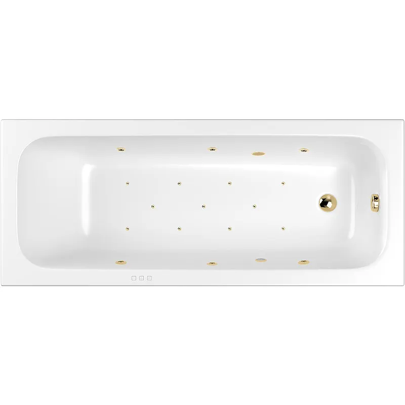 Акриловая ванна Whitecross Vibe 170x70 0105.170070.100.RELAX.GL с гидромассажем.Характеристики: Цвет: белый. Материал: литой акрил. Размеры (ШхВхД): 700х600х1695 мм. Форма: прямоугольная. Высота борта: 40 мм. Глубина: 410 мм. Глубина до перелива: 305 мм. Объем: 185 л. Управление: сенсорное. Аэромассаж. Зоны гидромассажа: боковая. Цвет форсунок: золото. Расположение слива: в ногах. Ориентация: универсальная. Монтаж: пристенный. В комплекте поставки: Ванна на каркасе, со сливом-переливом. Гидромассажная система (6 форсунок MIDI-JET) с функцией Пульсирующий режим. Аэромассажная система (11 форсунок AERO-JET) с функцией регулировки интенсивности массажа. Сенсорное управление на 3 функции с датчиком уровня воды (защита от сухого пуска). Хромотерапия с функцией Стоп (7 режимов работы).