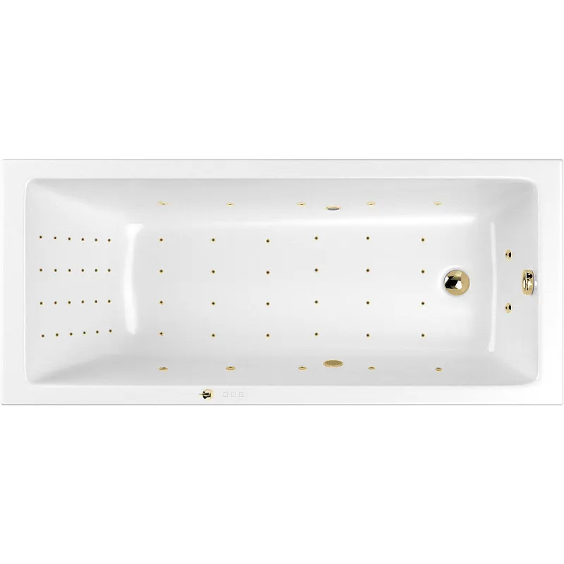 Акриловая ванна Whitecross Wave 180x80 0101.180080.100.NANO.GL с гидромассажем.Характеристики: Цвет: белый. Материал: литой акрил. Размеры (ШхВхД): 795х600х1795 мм. Форма: прямоугольная. Высота борта: 40 мм. Глубина: 465 мм. Глубина до перелива: 345 мм. Объем: 287 л. Управление: сенсорное. Зонный переключатель. Аэромассаж. Хромотерапия. Массаж Нано. Зоны гидромассажа: боковая, спины, ступней. Цвет форсунок: золото. Расположение слива: в ногах. Ориентация: универсальная. Монтаж: пристенный. В комплекте поставки: Ванна на каркасе, со сливом-переливом. Гидромассажная система (10 форсунок MICRO-JET) с функцией Пульсирующий режим. Массаж спины (24 форсунок NANO-JET). Аэромассажная система (24 форсунок NANO-JET) с функцией регулировки интенсивности массажа. Массаж ступней (2 форсунки MICRO-JET). Сенсорное управление на 3 функции с датчиком уровня воды (защита от сухого пуска). Кран-баланс (регулировка системы массажа спины). Хромотерапия с функцией Стоп (7 режимов работы).