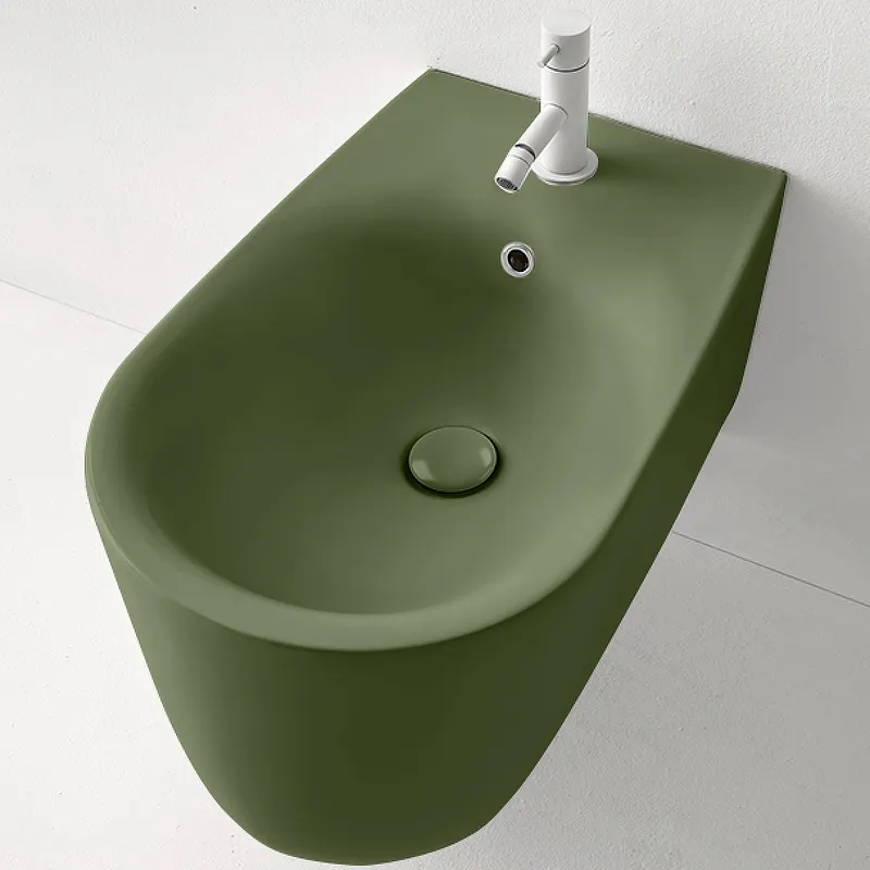 Биде Kerasan Nolita 532511*1 подвесное.Характеристики: Цвет: Verde muschio (зеленый мох). Материал: фарфор. Размеры (ШхВхД): 350х330х550 мм. Выпуск: горизонтальный, в стену. Отверстия под смеситель: 1. Перелив. Цвет фурнитуры: хром. Монтаж: подвесной, крепление к стене. В комплекте поставки: Чаша биде. Крепления WB9N.