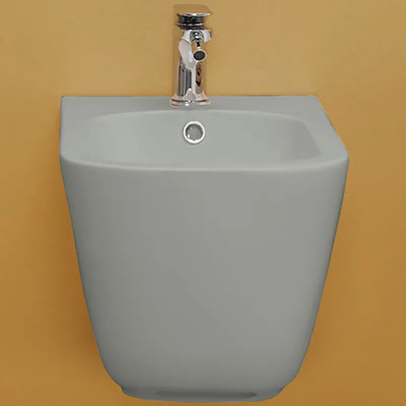 Биде Kerasan Tribeca 512559 подвесное.Характеристики: Цвет: grigio matt (светло серый матовый). Материал: фарфор. Размеры (ШхВхД): 350х315х540 мм. Выпуск: горизонтальный, в стену. Форма: прямоугольная. Монтаж: подвесной, крепление к стене. Отверстия под смеситель: 1. Перелив. В комплекте поставки: Чаша биде. Крепления WB9N.