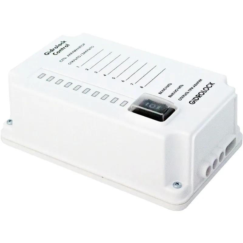 Блок управления Gidrоlock Control 20800132.Характеристики: Цвет: белый. Форма: прямоугольная. Выходная мощность: 800 Вт. Потребляемая мощность: 1,5 Вт. Rоличество входов для контроля объема протекающей жидкости: 2. Максимальное количество кранов: 6. Максимальное количество датчиков: 200. Напряжение крана: 12 В. Напряжение питания контроллера: 220 В Степень защиты: IP54. Период автоповорота кранов: 14 дней. Время срабатывания: 2 сек. В комплекте поставки: Блок управления Gidrоlock Standard. Крепеж.