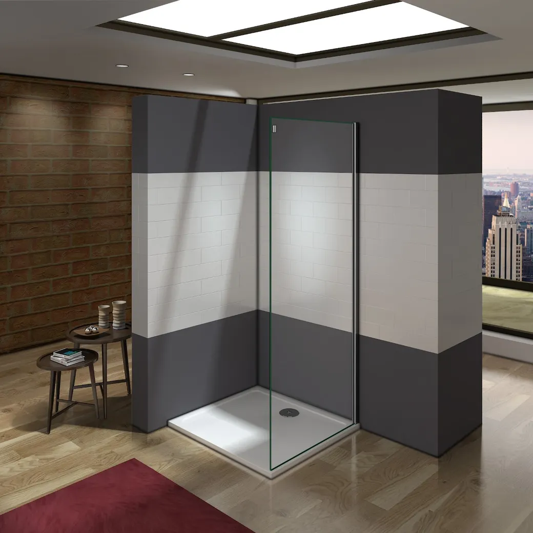 - Прозрачное стекло для душевой: Обеспечивает максимальное проникновение света, создавая ощущение простора в ванной.
