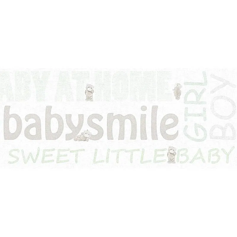 Бордюр детский AS Creation Little Stars 35848-1 Винил на флизелине (0,17*5) Белый/Серый/Зеленый, Надписи