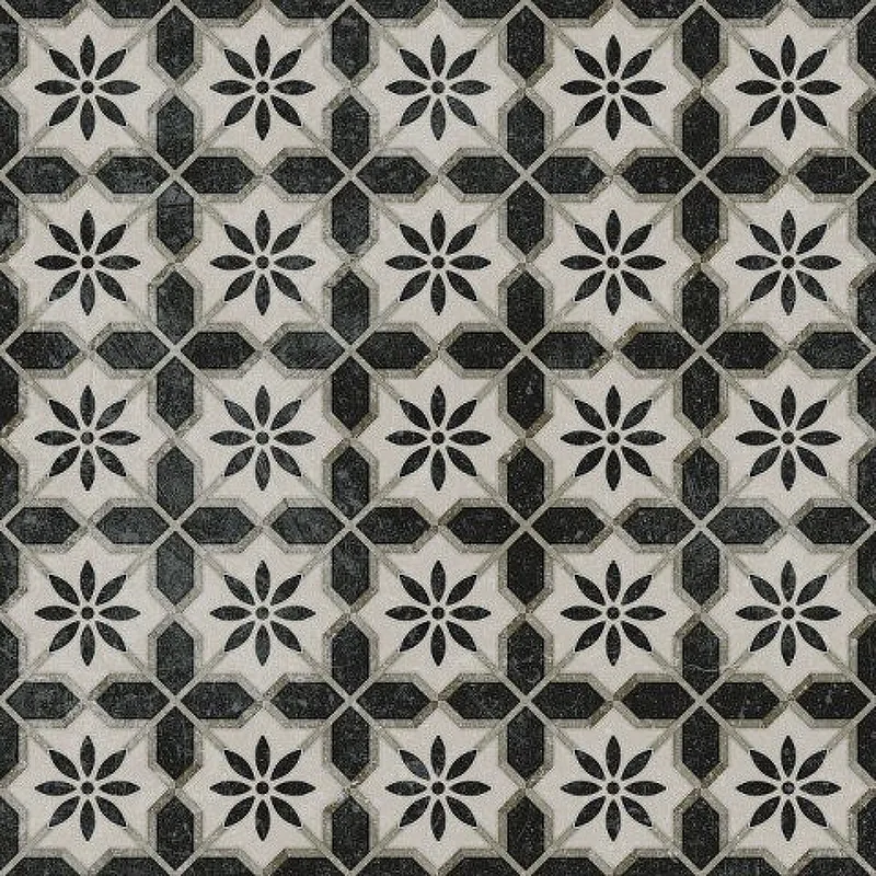 Декор Kerama Marazzi Фреджио 1 черно-белый VT\A294\SG1544N 20х20 см — это идеальное решение для отделки стен и пола. Эта черно-белая плитка с орнаментом и мраморным рисунком привнесет в ваш интерьер стиль ар-деко или mid-century. Изготовленная из качественного керамогранита, она подходит для ванной и кухни.