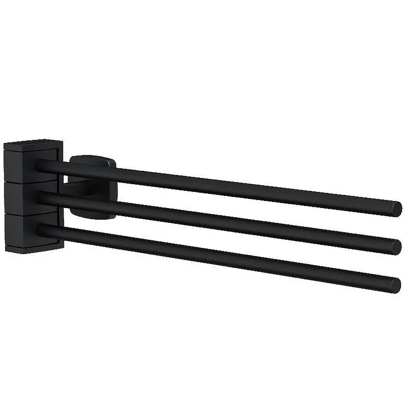 Тройной держатель для полотенец AM.PM Gem A9032722 поворотный.Универсальный и лаконичный дизайн изделия отлично впишется в современный интерьер ванной комнаты.Характеристики: Цвет: черный. Материал: цинк. Габариты (ШхВхД): 34,3х9,6х4,8 см. Вешалка-вертушка: возможно расположить каждый из трех держателей в удобном вам положении. Метод крепления: шурупы. Монтаж: настенный. В комплекте поставки: держатель для полотенец.