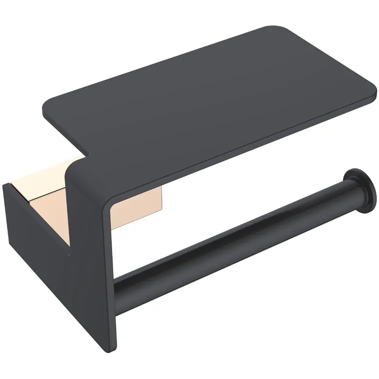 Держатель туалетной бумаги с полочкой Boheme Q 10941-G-B.Характеристики:Цвет: черный, золото. Материал: латунь, сталь. Монтаж: настенный. Размер: 170х110х78 мм.В комплекте поставки:держатель туалетной бумаги.