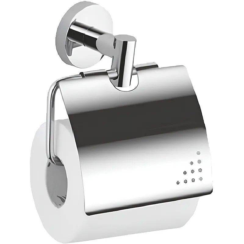 Держатель туалетной бумаги Haiba HB1703 с крышкой.Характеристики: Цвет: хром. Материал: металл. Размеры (ШхВхД): 12,8х14х5,5 см. Монтаж: настенный, на одно отверстие. В комплекте поставки: держатель туалетной бумаги.