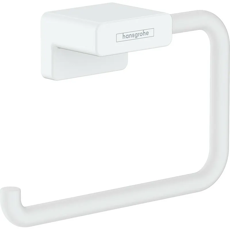 Держатель туалетной бумаги Hansgrohe AddStoris 41771700.Характеристики: Цвет: белый матовый. Материал: латунь. Диаметр между отверстиями: 26 см. Диаметр отверстия: 6 мм. Скрытое крепление. Монтаж: настенный. В комплекте поставки: держатель туалетной бумаги.