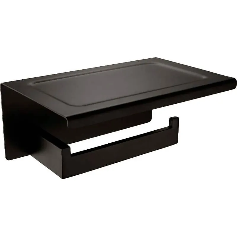 Держатель туалетной бумаги Orans P-7205 7205p00 с полкой.Характеристики: Цвет: черный матовый. Материал: нержавеющая сталь. Размеры (ШхВхД): 18,1 х 8 х 11,8 см. Монтаж: подвесной, крепление к стене. В комплекте поставки: держатель туалетной бумаги.