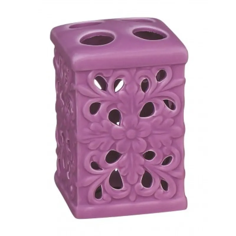 Держатель зубных щеток Fixsen Vety FX-A209-MP-2 – настольный аксессуар для ванной комнаты с изящным ажурным декором в виде цветочного орнамента. Выполнен в приятном фиолетово-сиреневом оттенке из пластика и керамики. Использованы материалы: керамика. Держатель зубных щеток внесет ноту уюта в ванной. Размеры: 6x6x10,1 см. Блистерная упаковка.