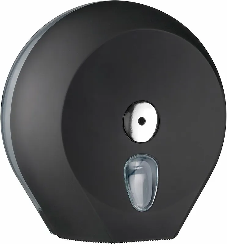 Диспенсер туалетной бумаги Nofer Black 05010.N.Характеристики: Цвет: черный. Размеры (ШхВхД): 27х27,3х12,8 см. Материал: ABS-пластик. Максимальный диаметр рулона: 23 см. Монтаж: настенный. Втулка: 42 мм. С окном контроля остатков расходных материалов. В комплекте поставки: диспенсер туалетной бумаги, ключ.