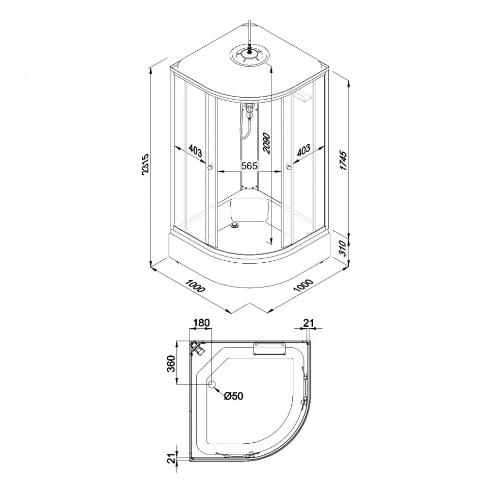 ДК Ультра 100*100 В (7 мест+сифон D50мм) арт-Щ0000061825