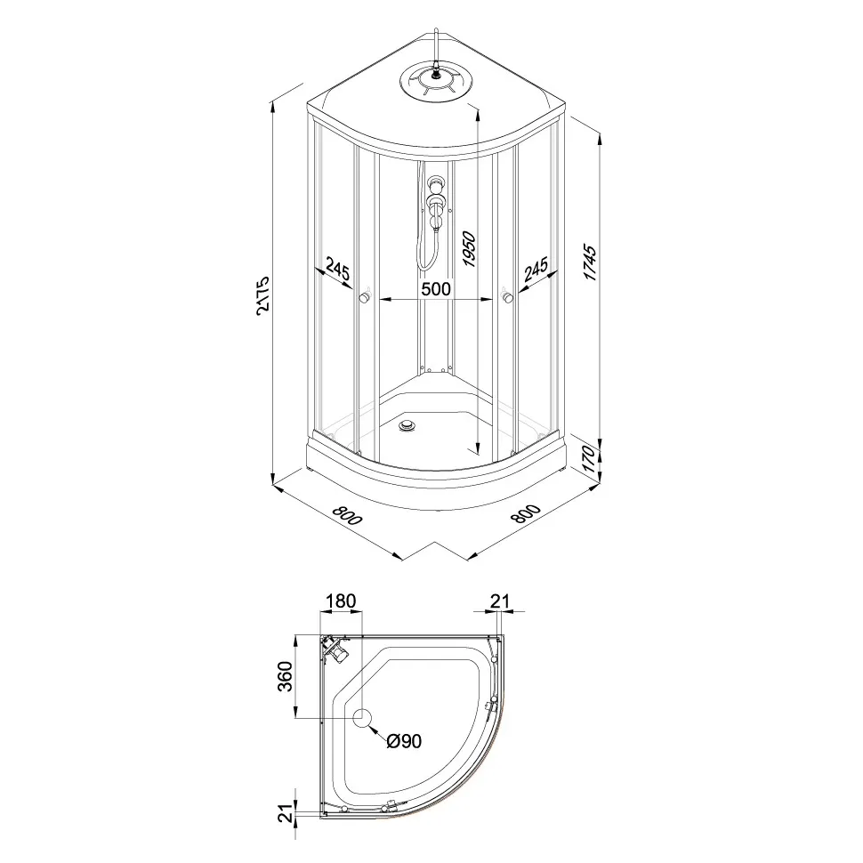 ДК Ультра 80*80 А (7 мест+сифон D90) арт-Щ0000061821