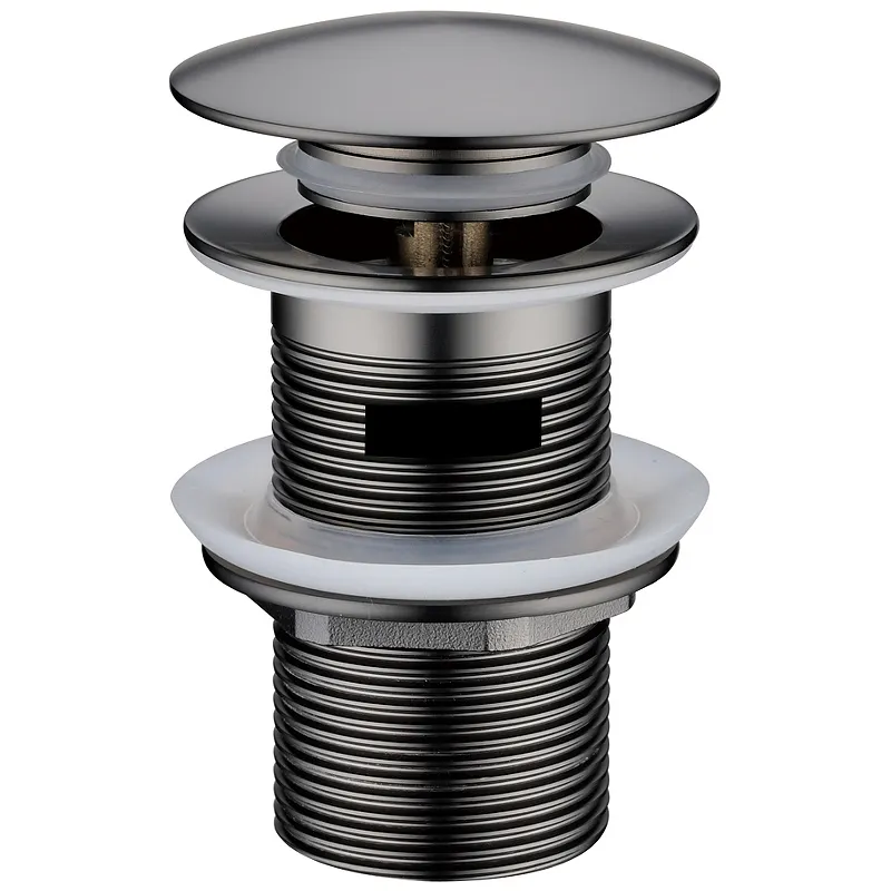 Донный клапан Boheme 612/2-GM click-clack.Характеристики: Цвет: оружейная сталь. Материал: латунь. Габариты (ШхВхД): 66x95х66 мм. Система click-clack. С переливом. Форма: круглая. В комплекте поставки: Донный клапан.